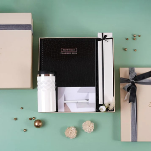 Welcome the brand-new year with a clean mind and clean mindset! This hamper has the perfect goodies to start the year with a clean outlook and start things off fresh and organized! The hamper comes with a clean, elegant and stylish monthly planner that helps you organize and sort out your monthly activities. A white pen with blue ink perfectly complements the monthly planner. The hamper also has a sleek sipper with geometric details on the outer body that is easy to use and convenient to carry. The hamper is completed with a box of assorted chocolates for the perfect sweet beginnings!