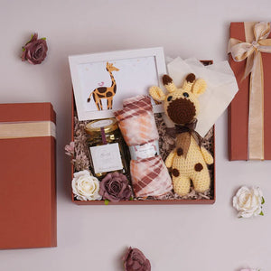 This gift hamper is perfect for any mom-to-be who loves to indulge in a little sweetness while feeling cozy and comfortable. It includes a delicious assortment of chocolates to satisfy her sweet tooth, a warm and soft scarf to keep her cozy during colder days, a beautiful photo frame to hold precious memories of her journey into motherhood, and an adorable giraffe toy to add some playful fun to her nursery decor.
