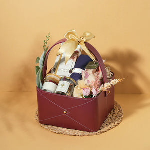 Looking for something pleasant and yet luxuriously elegant? How about a thoughtfully assembled and perfect for any occasion collection? Take home the eclectic blend of gourmet delights, scented goodies and a custom handmade scarf of the finest fabric, all beautifully compiled in cruelty free leather packaging?