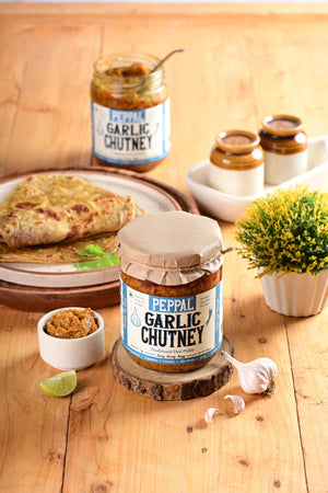 Our Garlic Chutney is a harmonious blend of fresh garlic bulbs, roasted red chilies, cumin seeds, and a hint of tangy tamarind, creating a rich and robust flavor profile. The garlic is carefully minced to achieve the perfect balance between intensity and aromatic depth, resulting in a chutney that is both savory and spicy.