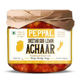 • Relish the perfect balance of flavors with our Sweet & Sour Lemon Achaar! This delightful pickle combines juicy lemons with a unique blend of sugar, spices, and a touch of tanginess. The result is a mouthwatering burst of sweet, sour, and slightly spicy notes that perfectly complement any meal.